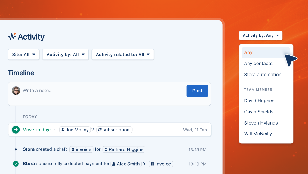 Whether you’re checking what your team completed today, confirming a note was logged, or reviewing automated actions taken by Stora, you can now see it all in one place.