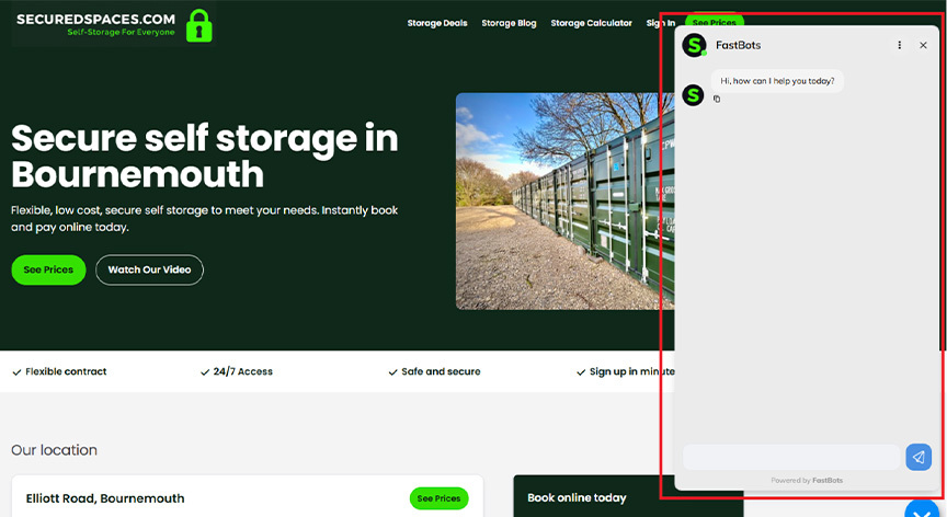A good example is Stora customer Secured Spaces. They have a convenient chat widget on their home page, so that customers and potential customers can quickly get in touch or find information.